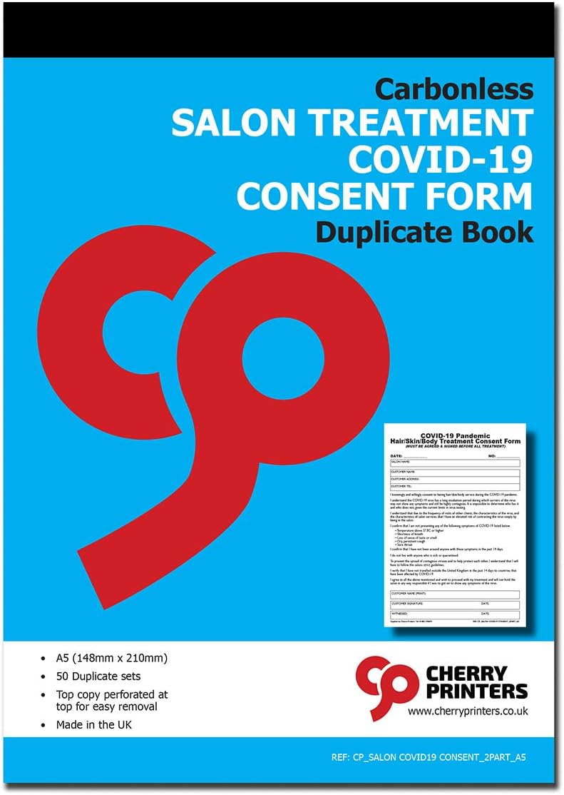 Cherry Carbonless Ncr Salon Treatment Covid 19 Consent Form Duplicate Book A5 50 Sets Hair Beauty Amazon Co Uk Office Products